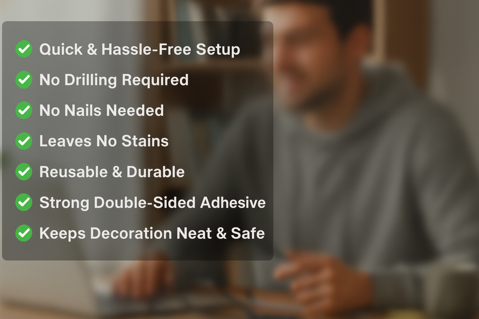 ✔ Easy to Use: Just peel & stick—no drilling, no screws, no mess. Works instantly on clean, dry, and dust-free surfaces.